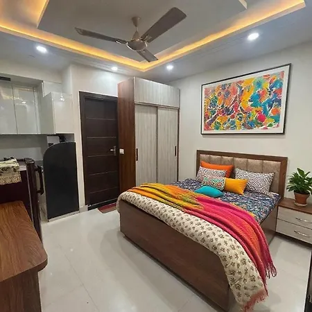 The spacious 1-bedroom The Goldleaf In South Delhi Apartment New Delhi is situated nearly 25 minutes' walk from the Jahanpanah City Forest and has a number of amenities, including a lift and an outdoor fireplace. Lotus Temple is located just 1.8 km away, and Nehru Place is in the immediate vicinity of the 100 m² apartment.